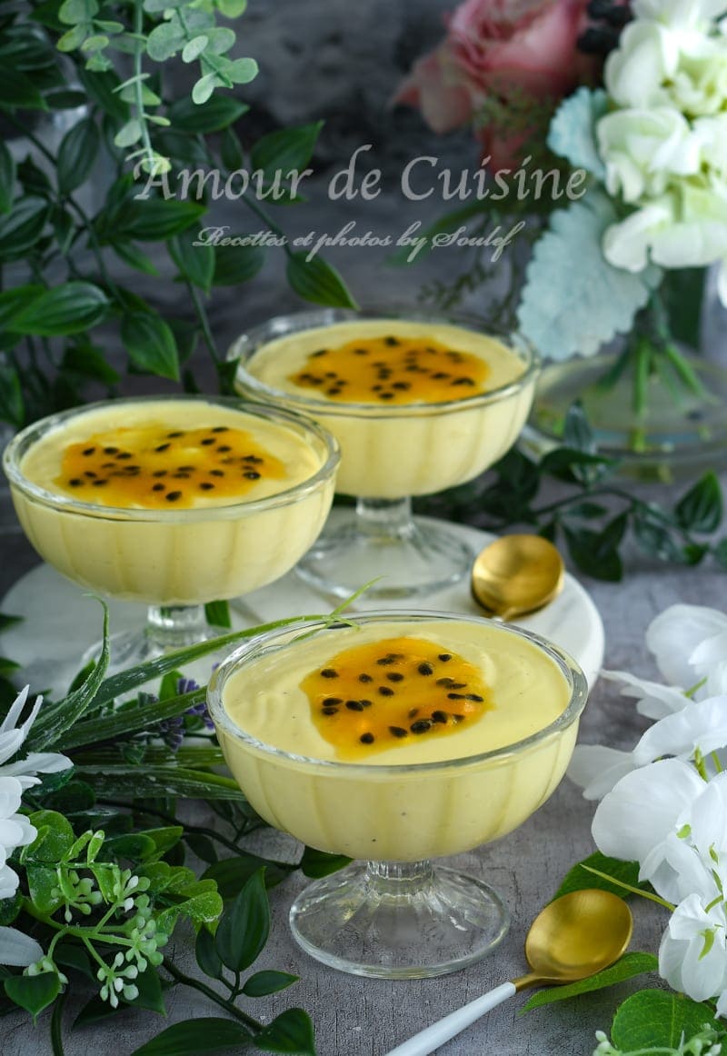 Dessert facile 15 min 1 min. 1 cuillère à soupe d'eau. Incorporez la préparation aux fruits de la passion sans cesser de battre.